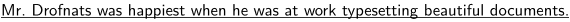 \limitatefirstline {\underbar{Mr.~Drofnats was happiest when he was at work% typesetting beautiful documents.}{109mm}{\unknown}