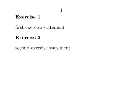 \setuppapersize[A8,landscape] \starttext \defineenumeration [Exercise] \startExercise first exercise statement \stopExercise \startExercise second exercise statement \stopExercise \stoptext